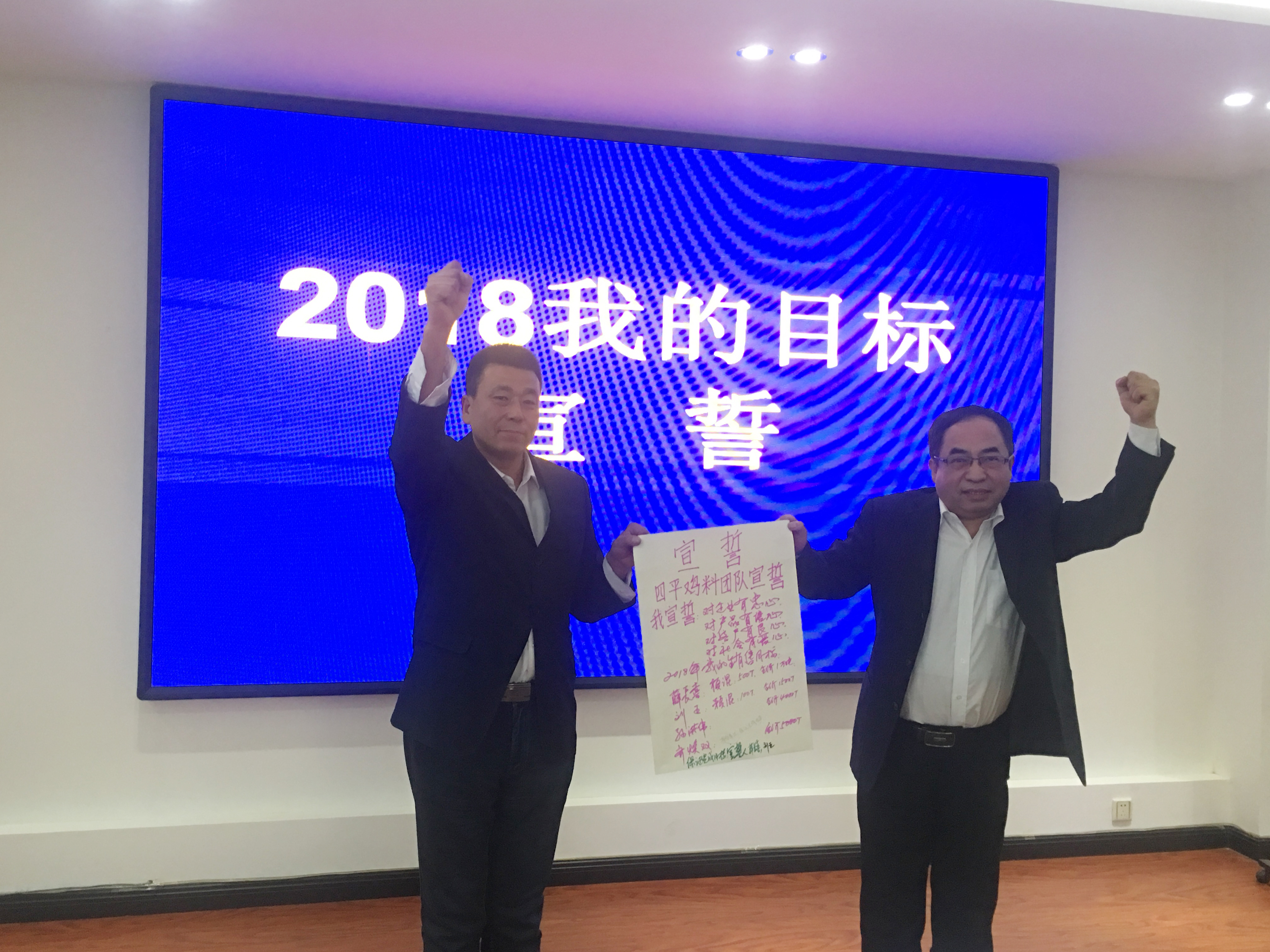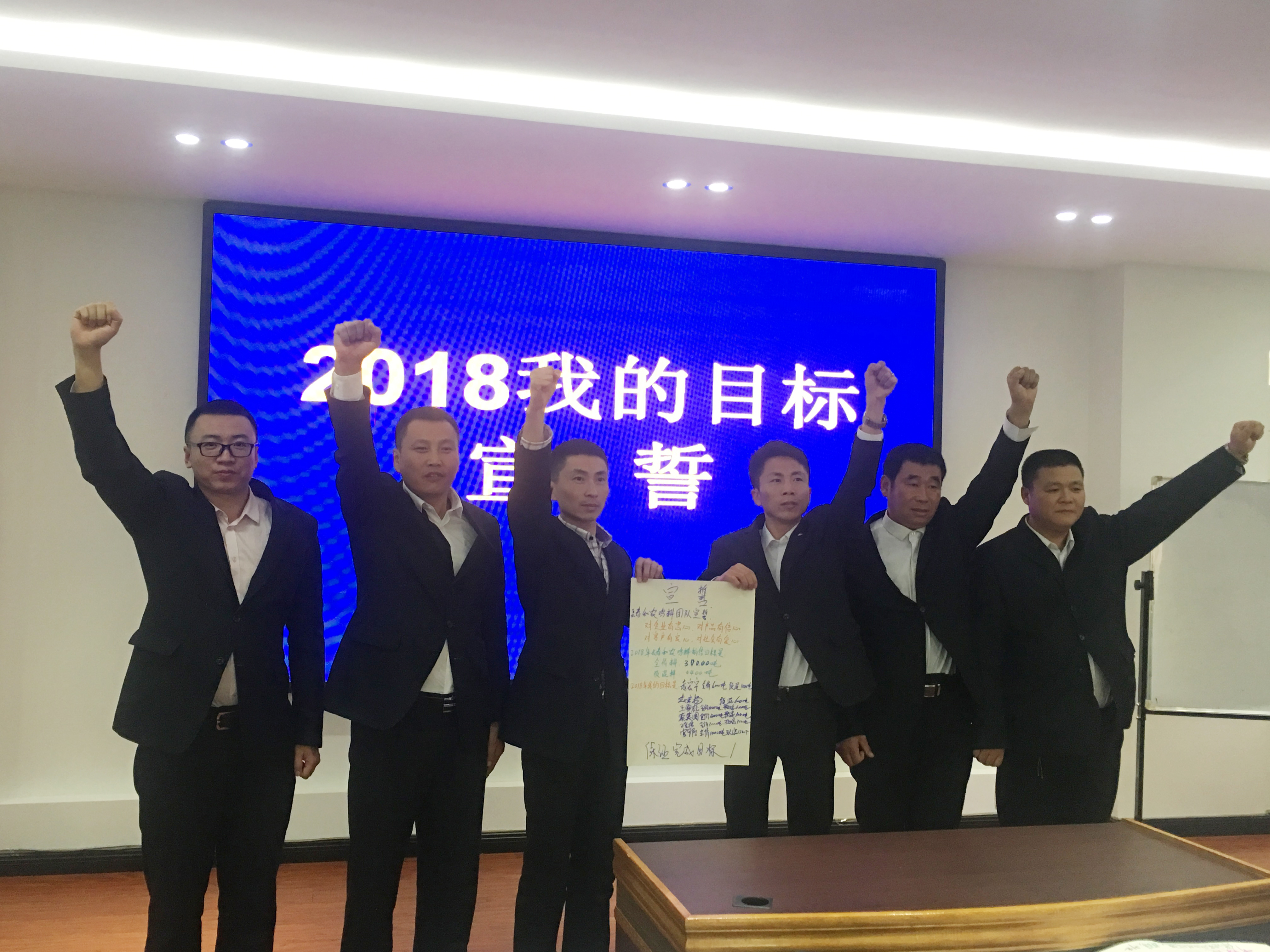 2018年1月3日,和農(nóng)牧業(yè)集團(tuán)2018年?duì)I銷目標(biāo)宣誓在公司會(huì)議室召開(kāi)?!皩?duì)企業(yè)有忠心,對(duì)產(chǎn)品有信心,對(duì)用戶有良心,對(duì)社會(huì)有愛(ài)心。我宣誓在2018年做到……”等鏗鏘有力的宣誓聲響徹整個(gè)會(huì)議現(xiàn)場(chǎng)。